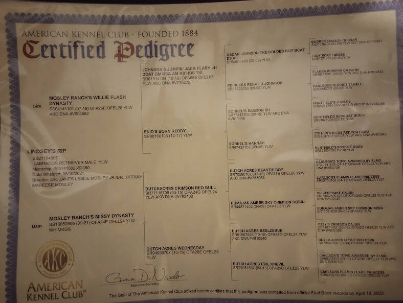 Rip is our Sire. He is insanely smart and hardworking. He is all business all the time but is a perfect gentleman. He has been so easy to train, he picks up on everything. AND...this guy is a shed hunting machine! When we go to spots that we know are going to be difficult, we just send Rip in...he'll take it to the train station! ;)